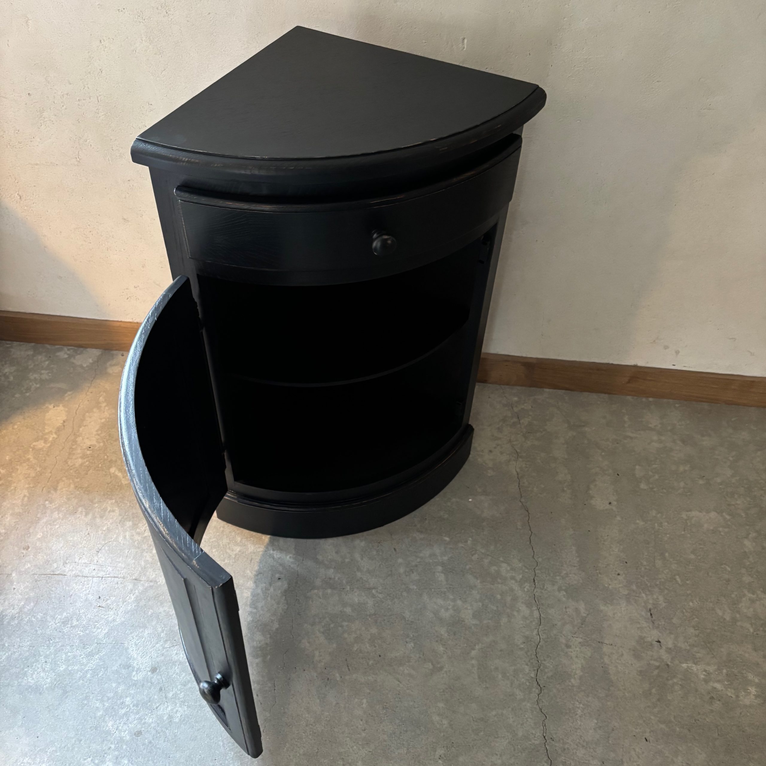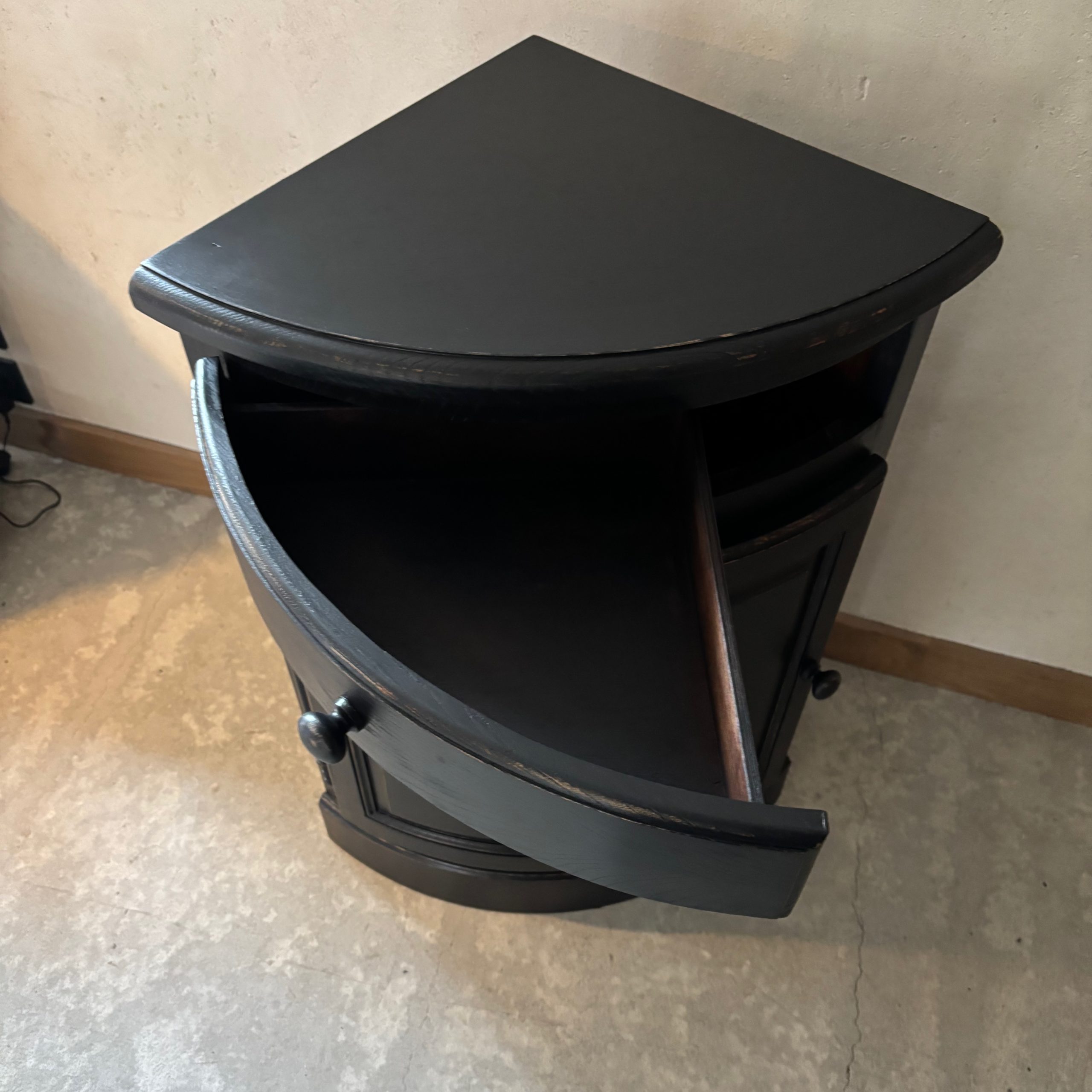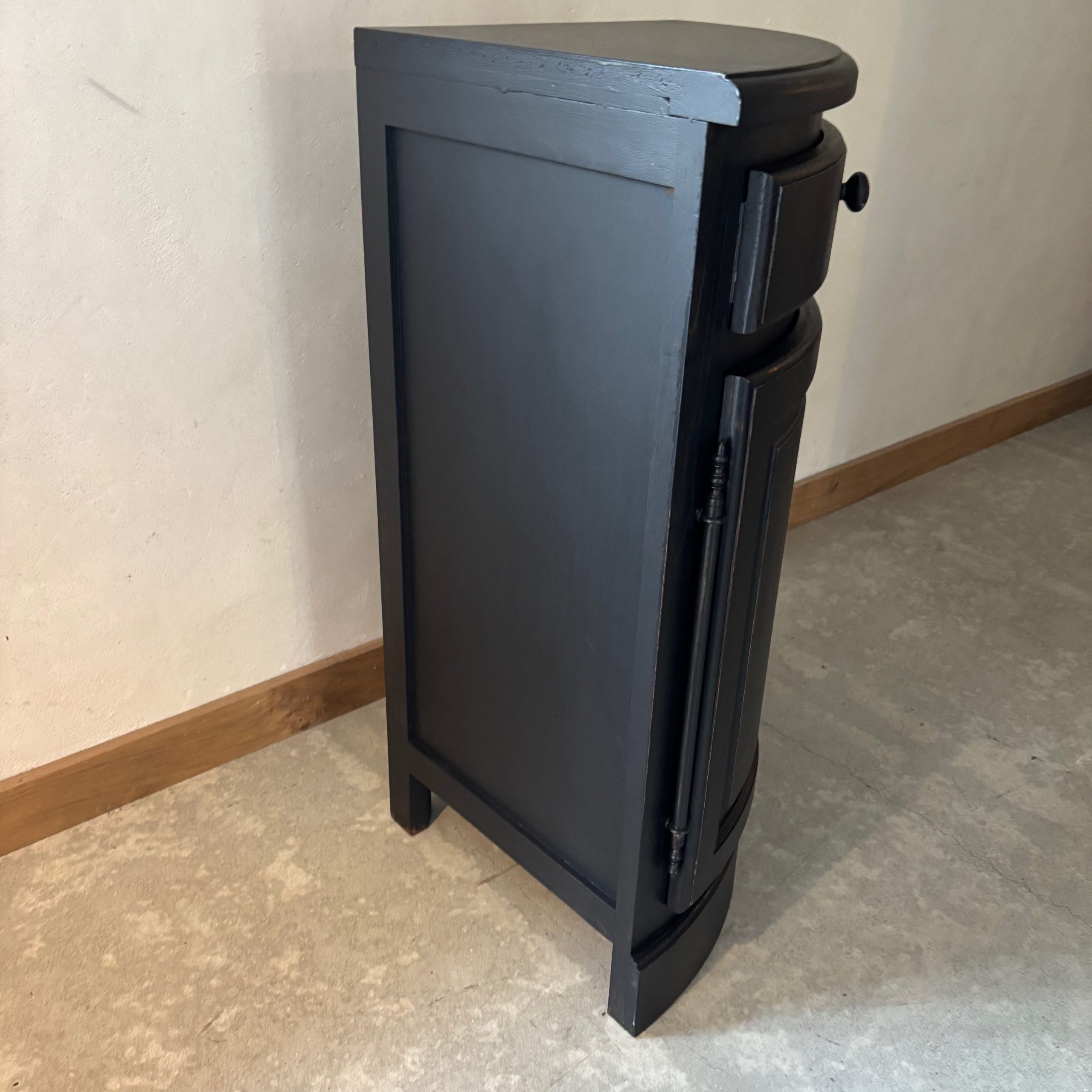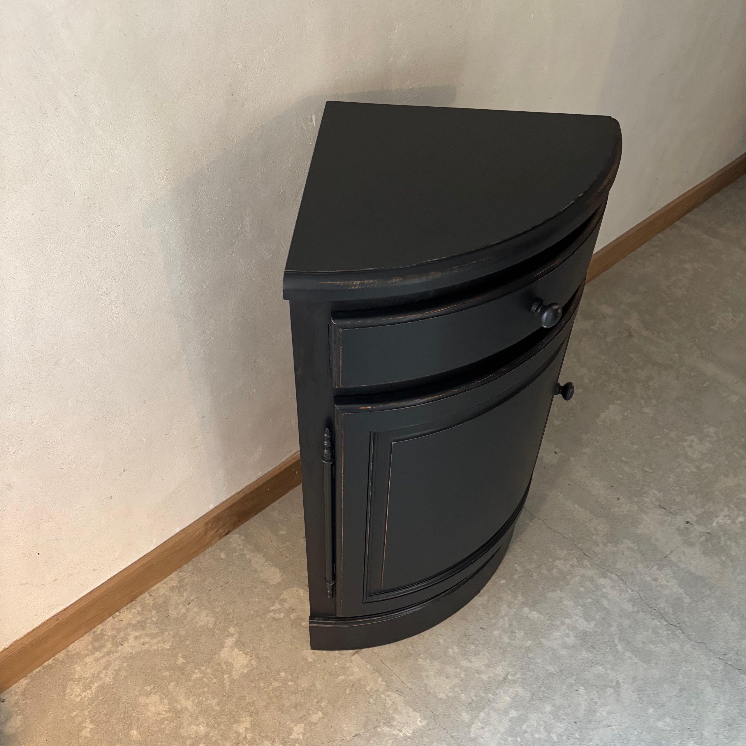 Meuble d’angle en bois, patine noire