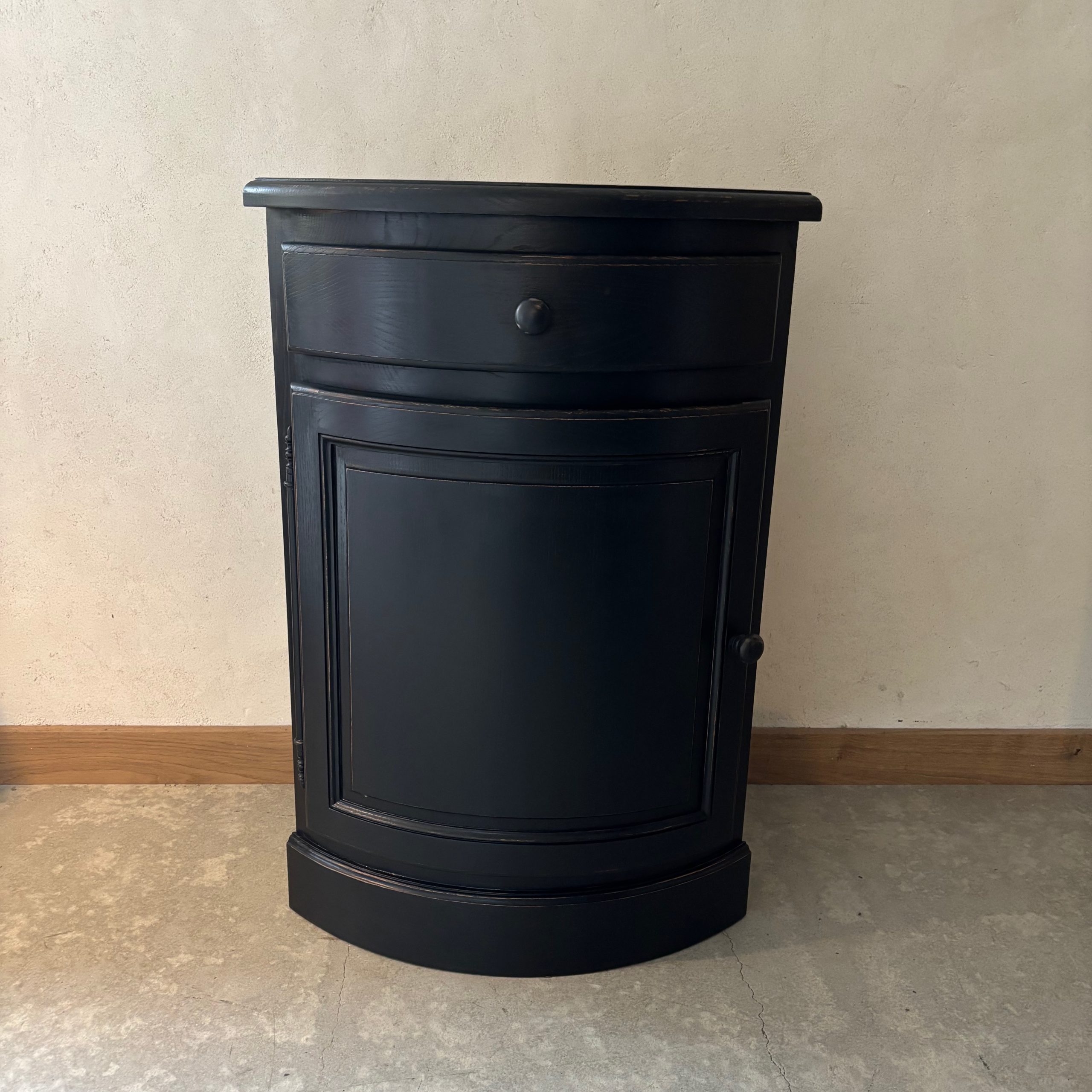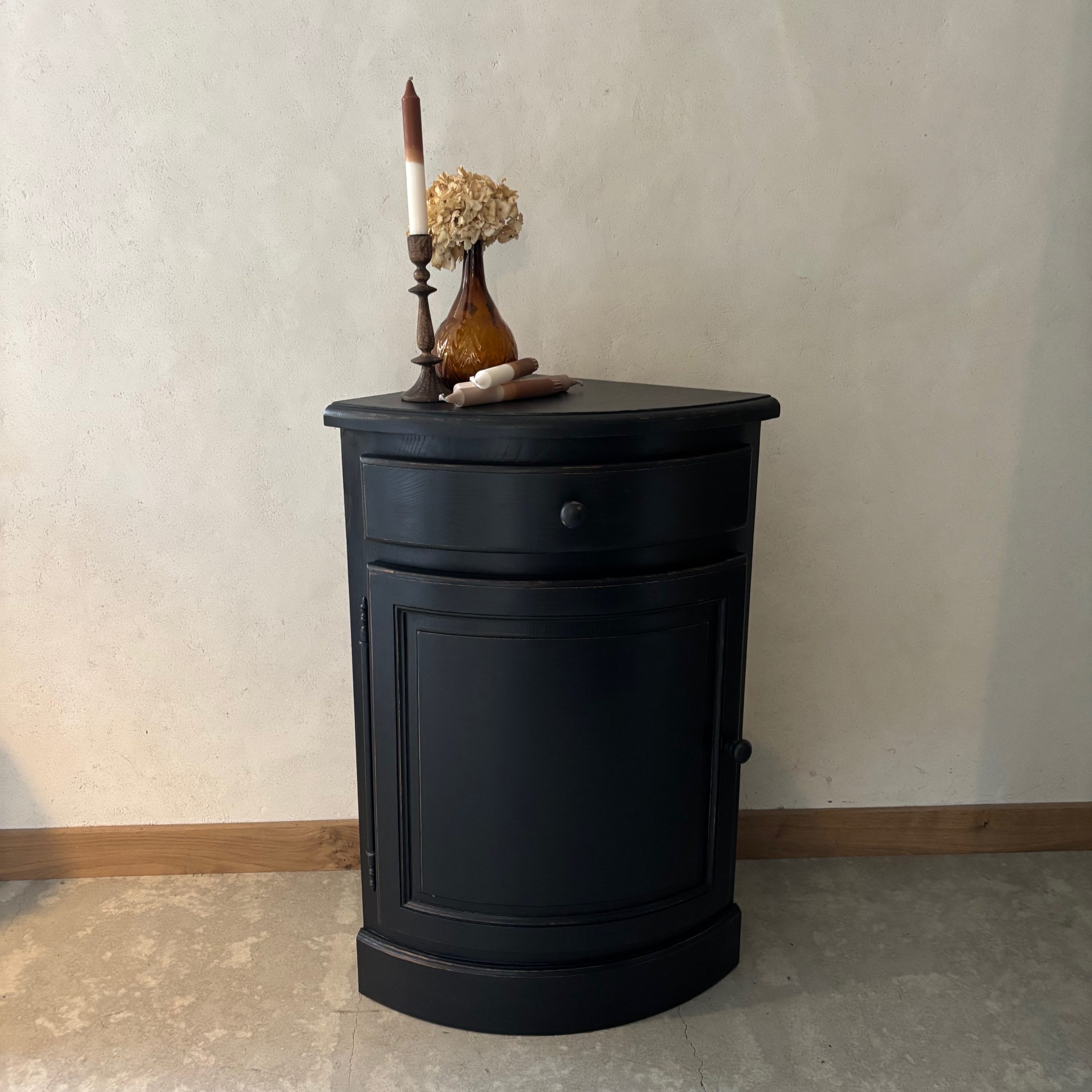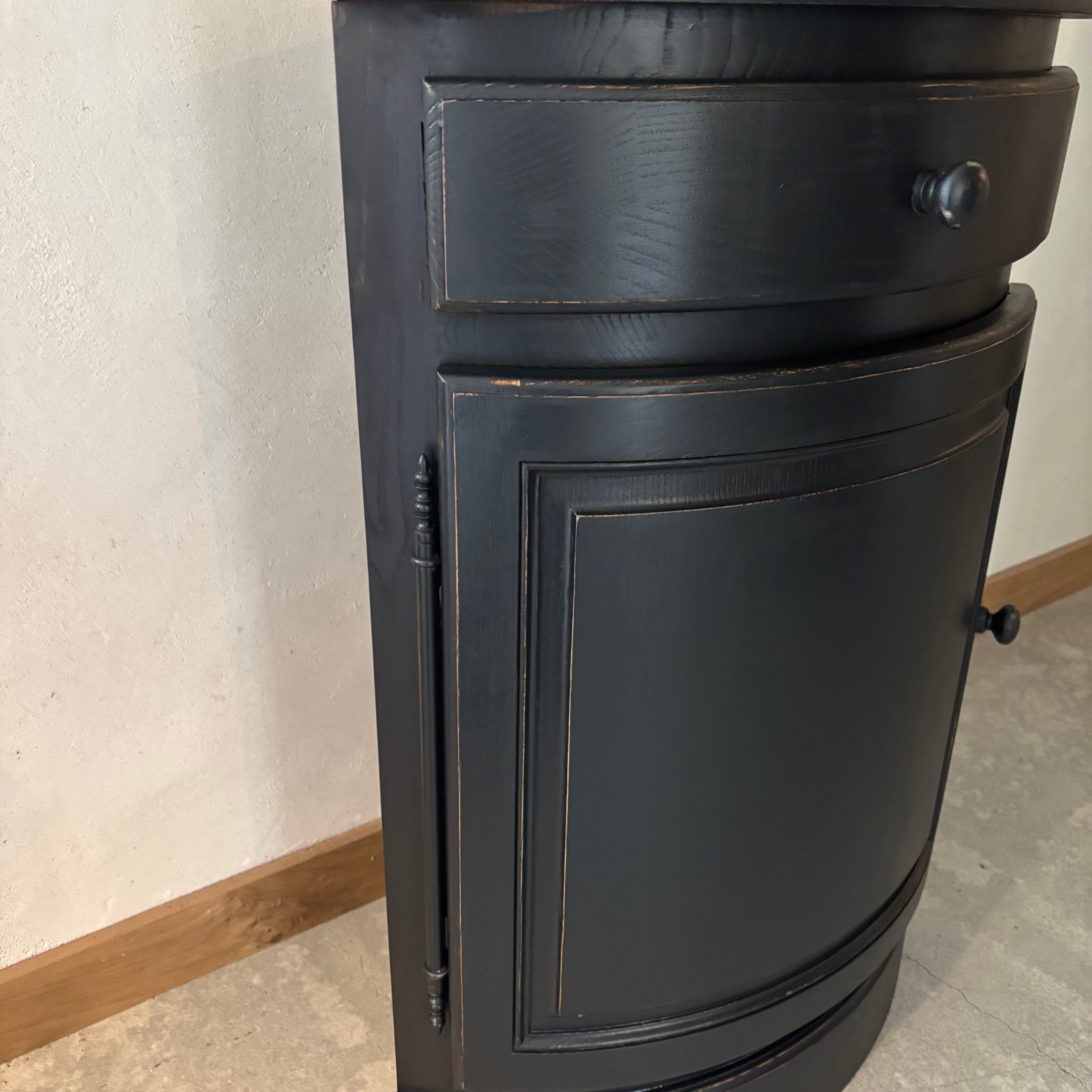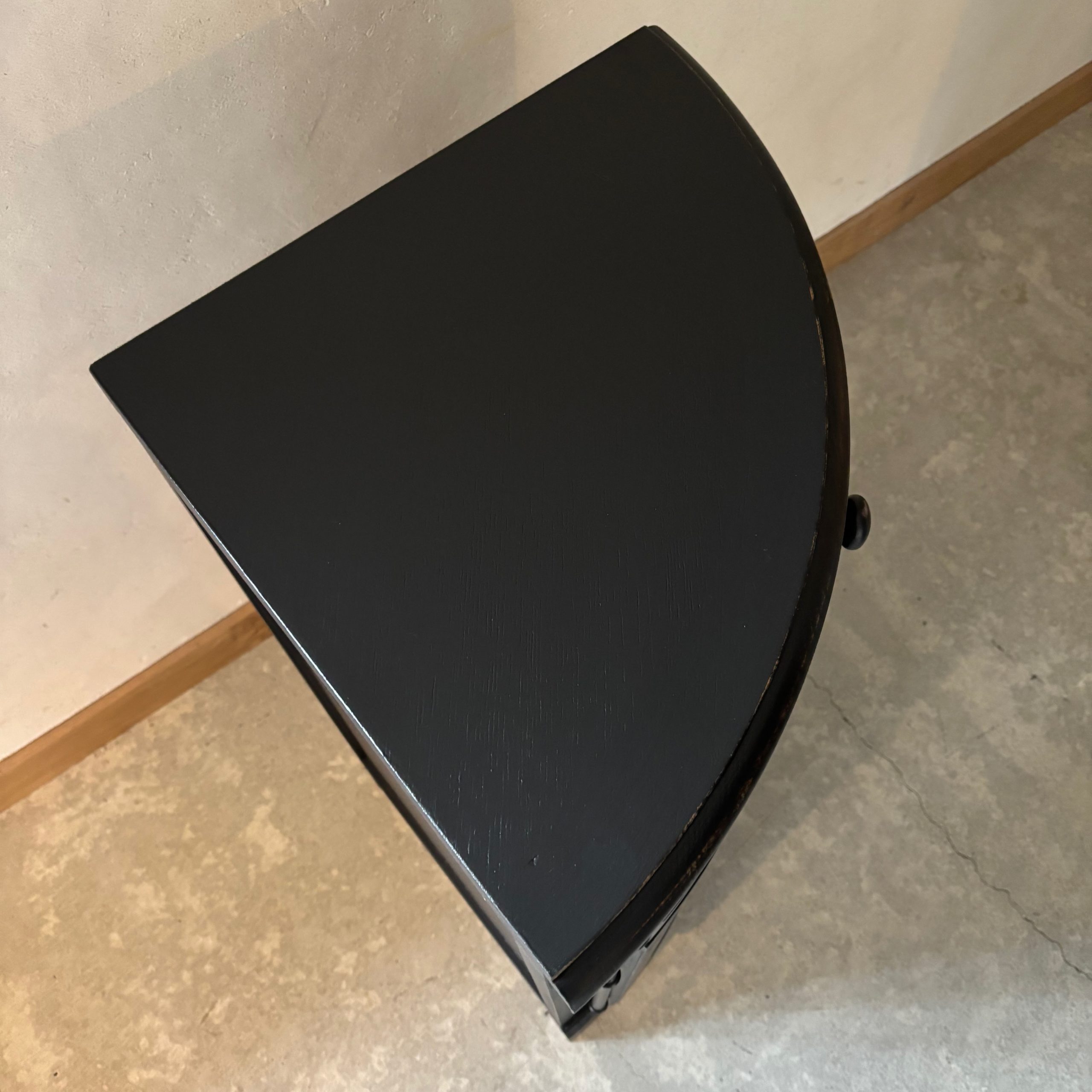 Meuble d’angle en bois, patine noire